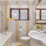 V koupelně jsou k dispozici samostatná toaleta a vana, hosté mají k dispozici i kompletní kuchyni.